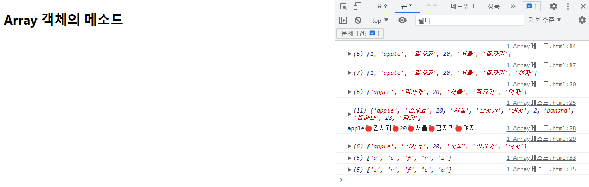 <title>Array 객체의 메소드</title>