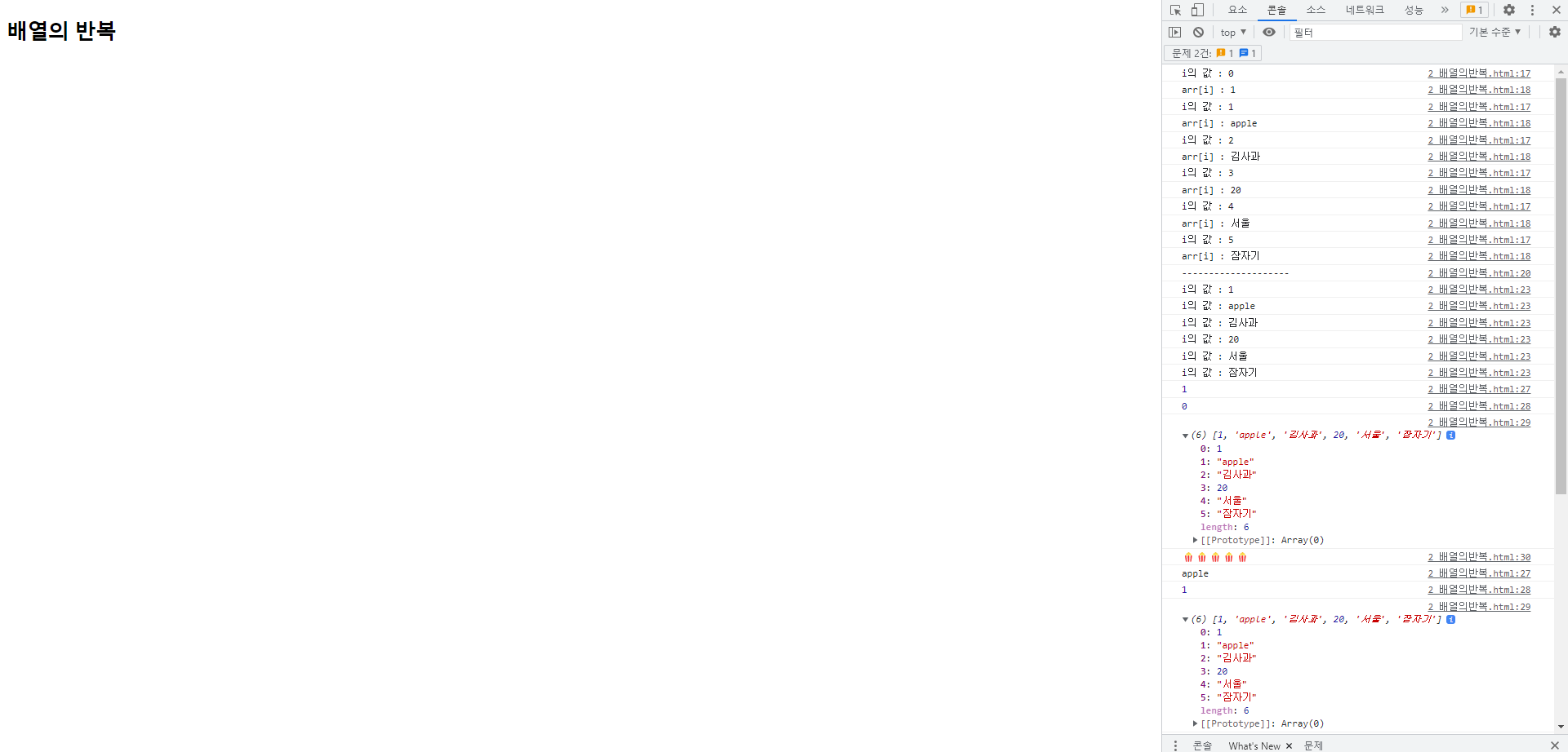 <h2>배열의 반복</h2>